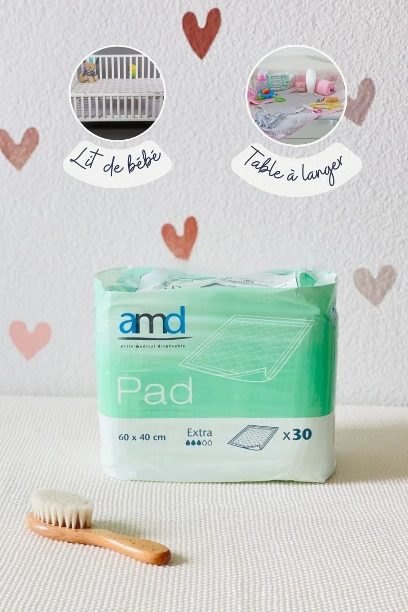 Protection maligne : 40 alèses jetables pour table à langer, lit, canapé… Environ 2-3 semaines selon usage.